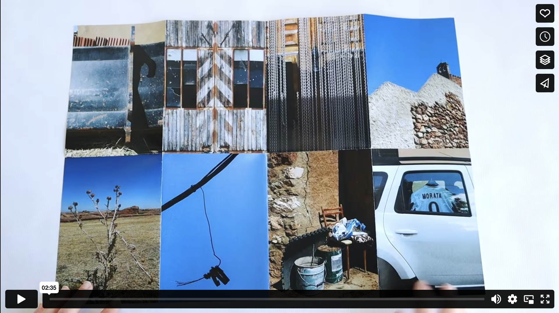 MESETARIAN is an experimental photobook about the rural, the urban, the plural, the individual, but essentially about the meseta (plateau). The images were taken during a brief stay in the Segovian village of Ayllón, and these are materialised in the stickers, postcards and poster that act as souvenirs that make up this book-object. These elements, which invite play and experimentation, are shown as that which is characteristic of this place, and how, in turn, they are the fruit of the Spanish society and tradition to which it belongs.